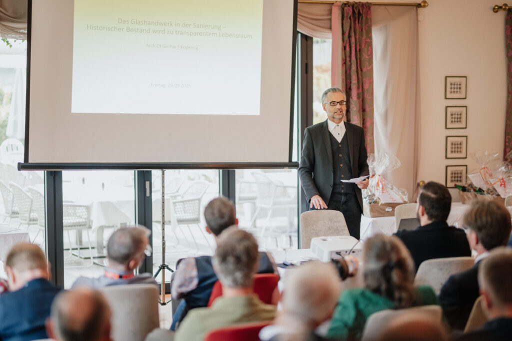 Das Programm bot eine dichte Auswahl an Fachvorträgen, Diskussionen und Praxiseinblicken. Im Fokus standen u. a. der CO₂-Abdruck von Isolierglas, ÖNormen und Gewährleistung, die Sanierung mit Dünnglas, das Glaserhandwerk im historischen Bestand sowie der Ansatz „Sanieren statt Tauschen“ als Beitrag zur Nachhaltigkeit. Ergänzt wurde das Programm durch praxisnahe Themen wie Fehleranalyse beim UV-Kleben, Brandschutz in Theorie und Versuch und Einblicke in die aktuellen Entwicklungen am Glasmarkt.